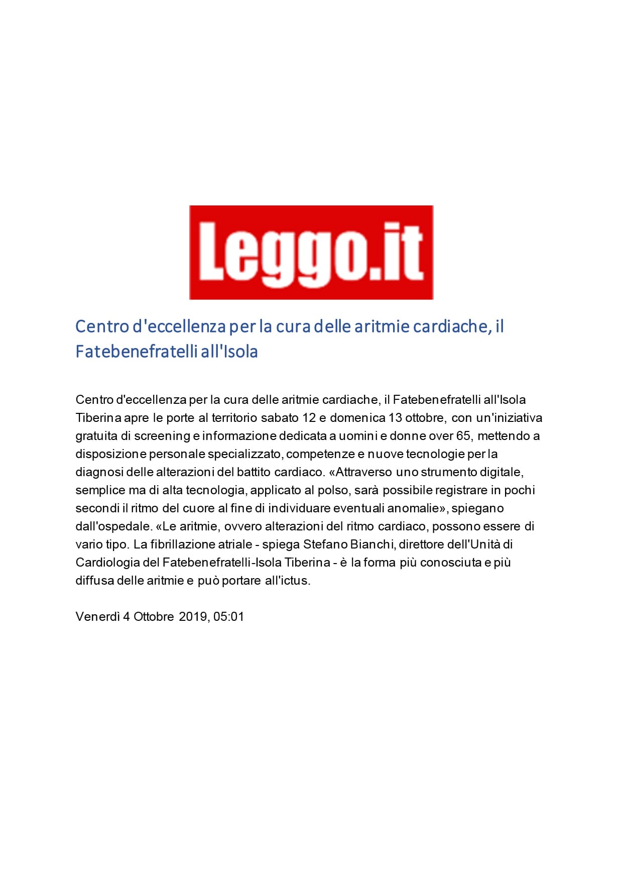 Grazie all’ausilio di Apple Watch e all’ambiente applicativo sviluppato per questa iniziativa, il 12 e 13 ottobre sono stati effettuati più di 4.300 ECG sui cittadini che hanno aderito alla campagna di prevenzione prenotando, tramite sito web o call center, il proprio screening. Una volta arrivati alle postazioni di accoglienza, indirizzati da medici e volontari, i pazienti hanno mostrato il QR Code identificativo, generato in fase di iscrizione, indossando poi gli Apple Watch per la generazione dell’ECG. Particolare attenzione è stata posta al trattamento dei dati personali, in accordo con le leggi attuali sulla tutela della privacy. Tramite il riconoscimento del QR Code, attraverso l’app, è stato possibile salvare i tracciati in modalità pseudo anonimizzata. La combinazione di essi è stata successivamente inviata a server protetti i cui dati sono stati resi accessibili esclusivamente al personale medico incaricato di generare i referti che sono stati resi disponibili sulla piattaforma online del Fatebenefratelli o agli sportelli adibiti alla consegna.